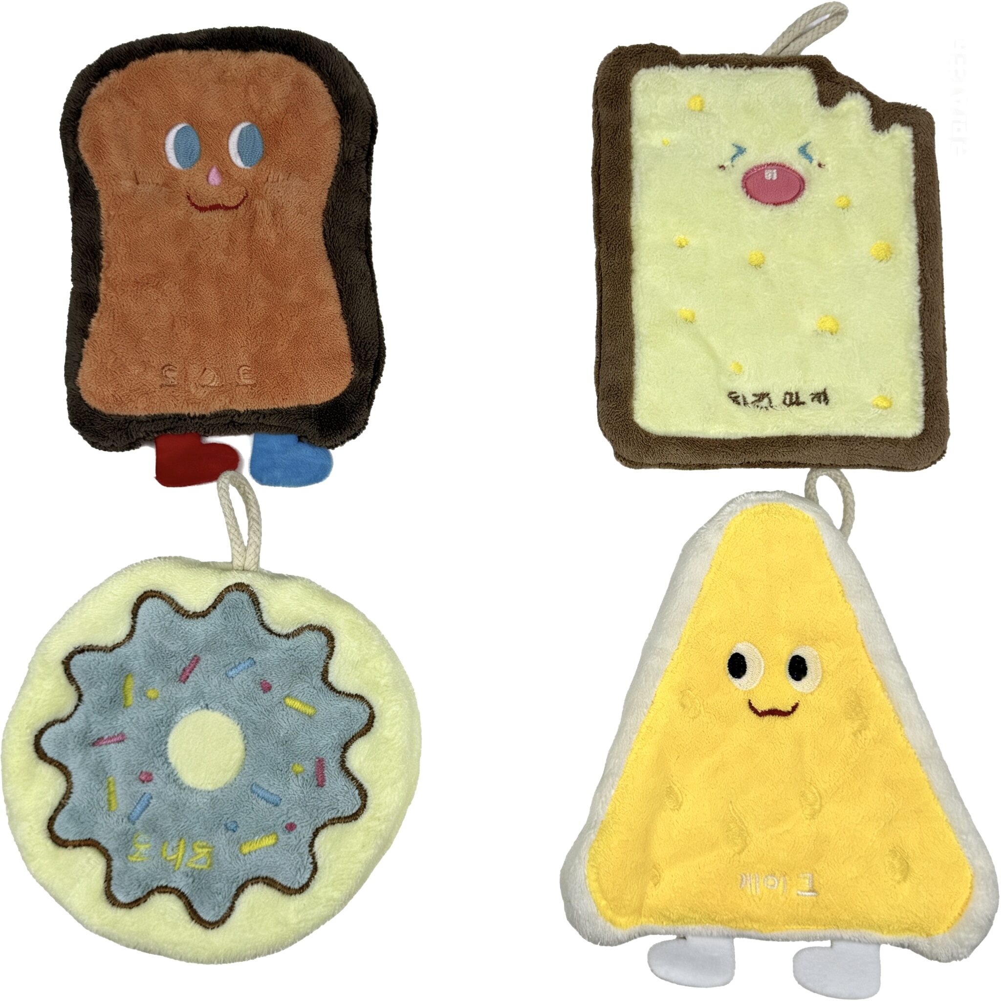 Cute Food Shaped Plush Hand Towels | Donut & Toast & Cheese Hanging Towel Set